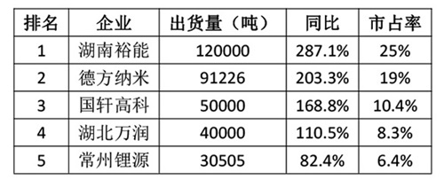 電池中國網(wǎng):中國市場磷酸鐵鋰材料出貨量TOP 5