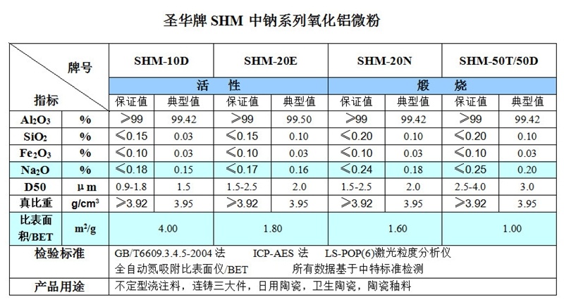 1、圣華牌SHM中鈉系列氧化鋁微粉