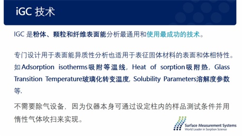 在電池材料的研發過程中,電池材料性能——熱穩定性會引起材料的結構、物理化學、電化學等屬性發生改變。尤其是備受看好的固態電池,從實驗室規模擴大到工業生產,需要在電極中實現固態電解質、活性物質和碳的均勻分布。材料的表面能對保證材料之間的相容性至關重要,而反氣相色譜法(IGC)是粉體、顆粒和纖維表面能分析最通用和使用最成功的技術。Surface Measurement Systems公司的石琳琳應用工程師給我們詳細介紹了正極材料、負極材料的表面能案例,并介紹了公司的SMS iGC-SEA反氣相色譜系統。