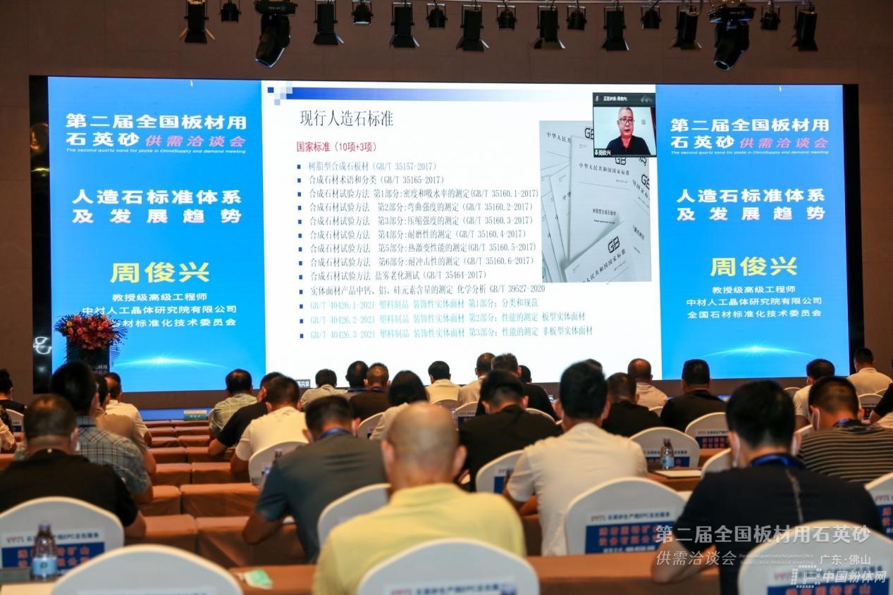全國石材標準化技術委員會、中材人工晶體研究院有限公司的教授級高級工程師周俊興作《人造石標準體系及發展趨勢》報告