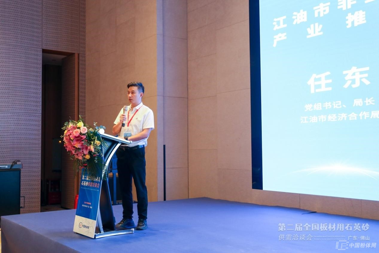 四川江油經濟合作局黨組書記/局長任東介紹了江油當地的文化底蘊、基礎設施、交通優勢,并分析了當地石英資源的優勢,以及企業來江油建廠的便利條件和優惠政策。