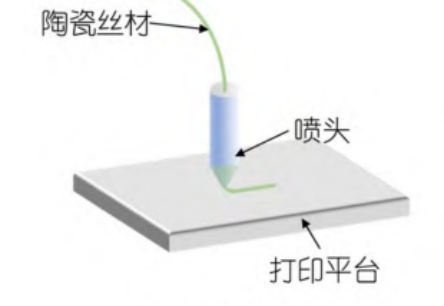 熔融沉積3D打印技術,是以SiC線材為原料的碳化硅陶瓷熔融沉積成型直接增材制造技術。首先通過特定的工藝,將SiC陶瓷粉體與高分子材料混煉、拉制成一定直徑的熱塑性的聚合物陶瓷線材。接下來將制備的SiC線材置于FDM設備,經設備加熱后的噴頭擠出,熱塑性的SiC線材熔融沉積到設備成型平臺上,溫度降低固化成型。成型臺下降,循環熔融沉積后成型出SiC陶瓷材料生坯,經后續高溫脫脂排膠、燒結后獲得SiC陶瓷材料及其制品。