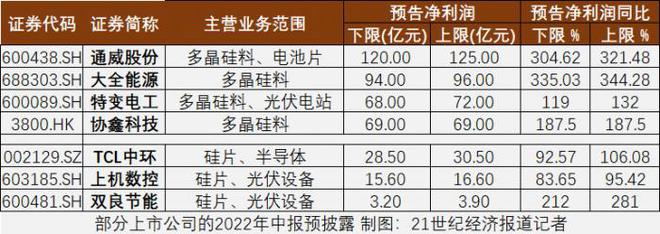 大全能源(688303.SH)和通威股份(600438.SH)上半年的歸屬于上市公司股東的凈利潤同比將翻超三倍。