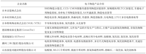 國內外部分重點電子陶瓷企業及重點產品