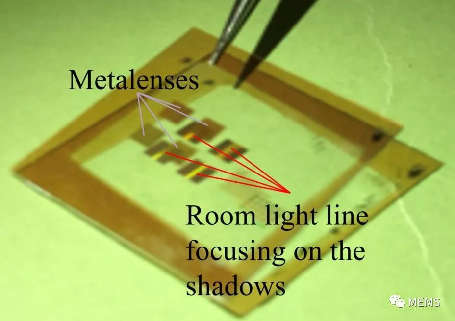 圖2 室內燈光下所制造超構透鏡的線聚焦演示