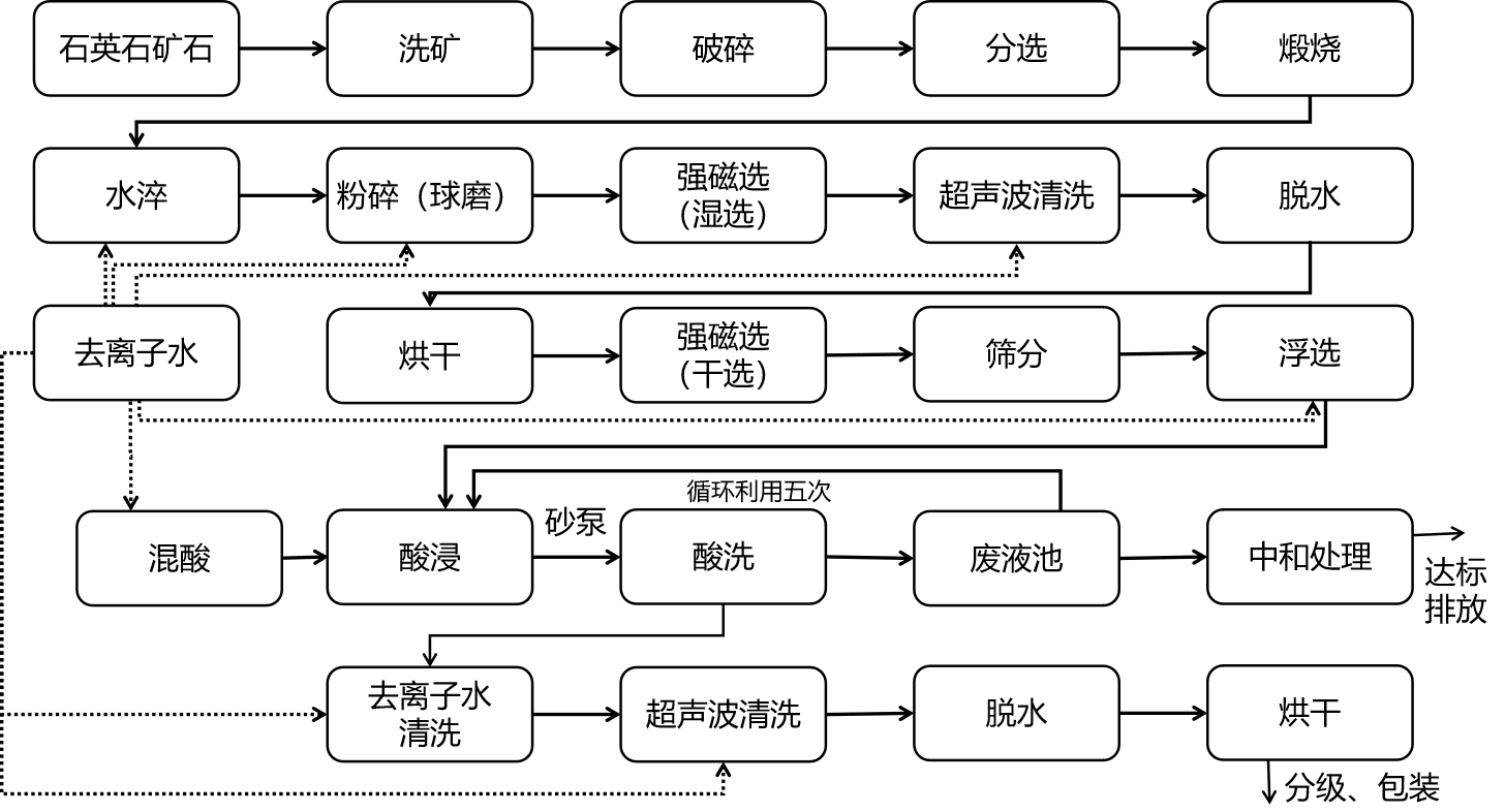 目前石英砂除雜的方法主要分為物理方法、化學(xué)方法。物理方法有磁選、反向浮選及煅燒水淬處理。化學(xué)方法包括無機(jī)酸浸及有機(jī)酸浸。常用的無機(jī)酸通常是HF、HNO3、HCl和H2SO4。目前通常通過物理方法與化學(xué)方法相結(jié)合能實(shí)現(xiàn)更好的除雜效果。