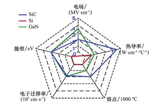 第三代寬禁帶功率半導體材料具有高熱導率、高擊穿場強、高飽和電子漂移速率和高鍵合能等優點,可以滿足現代電子技術對高溫、高功率、高壓、高頻以及抗輻射等惡劣條件的新要求,是當前半導體材料領域最有前景的材料,在國防、航空航天、能源、通信、電動化交通、工業等領域有著重要應用前景。整體來說,SiC是目前發展最成熟的寬禁帶功率半導體材料,GaN緊隨其后,金剛石、AlN和Ga2O3等也成為國際前沿研究熱點。