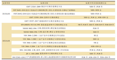 人們不僅對之含量做了嚴格規(guī)定,對之檢測方法也發(fā)布了相關(guān)標準。目前石棉的測試方法有偏光顯微鏡(PLM)法、X射線衍射(XRD)法、掃描電鏡-能譜(SEM-EDS)法、相差顯微鏡(PCM)法、紅外光譜(IR)法、拉曼光譜法、熒光顯微鏡(FM)法、熱重-差熱分析(TG-DTA)法、中子活化(NAA)法等。其中使用最多的是PLM法、XRD法和SEM-EDS法。