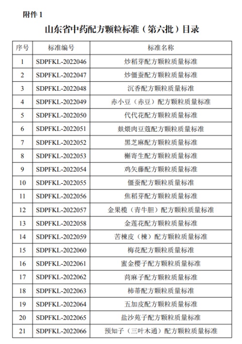 根據《藥品管理法》《國家藥監局 國家中醫藥局 國家衛生健康委 國家醫保局關于結束中藥配方顆粒試點工作的公告》(2021年第22號)有關規定,按照《國家藥監局關于發布〈中藥配方顆粒質量控制與標準制定技術要求〉的通告》(2021年第16號)及國家藥品標準制定相關程序,我局已組織完成第六批21個中藥配方顆粒標準的審定,現予以發布,自公告之日起正式實施。如有同品種的中藥配方顆粒國家藥品標準頒布實施,我省制定的相應中藥配方顆粒標準即行廢止。