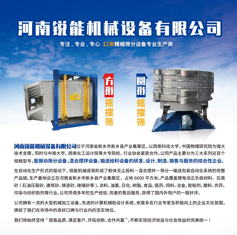 河南銳能機械設(shè)備有限公司位于河南省新鄉(xiāng)市新鄉(xiāng)縣產(chǎn)業(yè)集聚區(qū),以西南科技大學(xué)、中國物理研究院為強大技術(shù)支撐,同時與中南大學(xué)、西南化工設(shè)計院等大專院校、行業(yè)協(xié)會緊密合作。公司產(chǎn)品主要分為三大系列近百個規(guī)格型號,是振動篩分設(shè)備、混合攪拌設(shè)備、輸送給料設(shè)備的研發(fā)、設(shè)計、制造、銷售與服務(wù)的綜合性企業(yè)。公司擁有一流的大型機械加工設(shè)備,先進的計算機輔助設(shè)計系統(tǒng),依靠多名行業(yè)專家及積極向上的企業(yè)文化氛圍,鑄就了我們在市場中的良好口碑與行業(yè)內(nèi)的堅實地位。