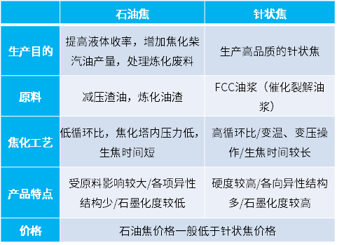 針狀焦可分為油系針狀焦和煤系針狀焦兩種。以石油渣油為原料生產的針狀焦為油系針狀焦;以煤焦油瀝青及其餾分為原料生產的針狀焦為煤系針狀焦。