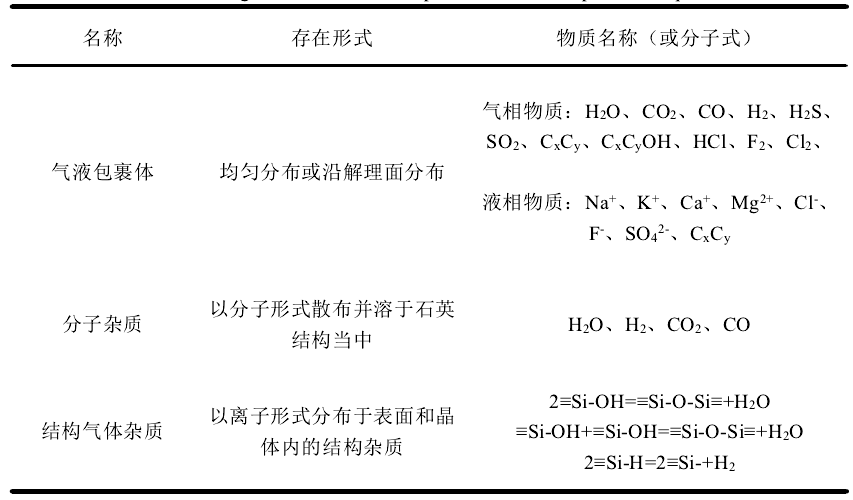 石英砂中流體雜質的存在形式及主要成分
