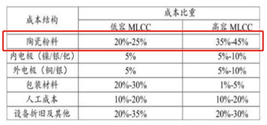 從MLCC成本結構角度來看,陶瓷介質材料在整個MLCC中成本占比較大,是MLCC產業鏈最重要一環。尤其是高容MLCC的生產,對介質材料的純度、粒徑、粒度分布和形貌有嚴格要求。目前公司為全球領先的MLCC粉體材料生產商,國內市場占有率達80%、全球市場占有率超過25%。