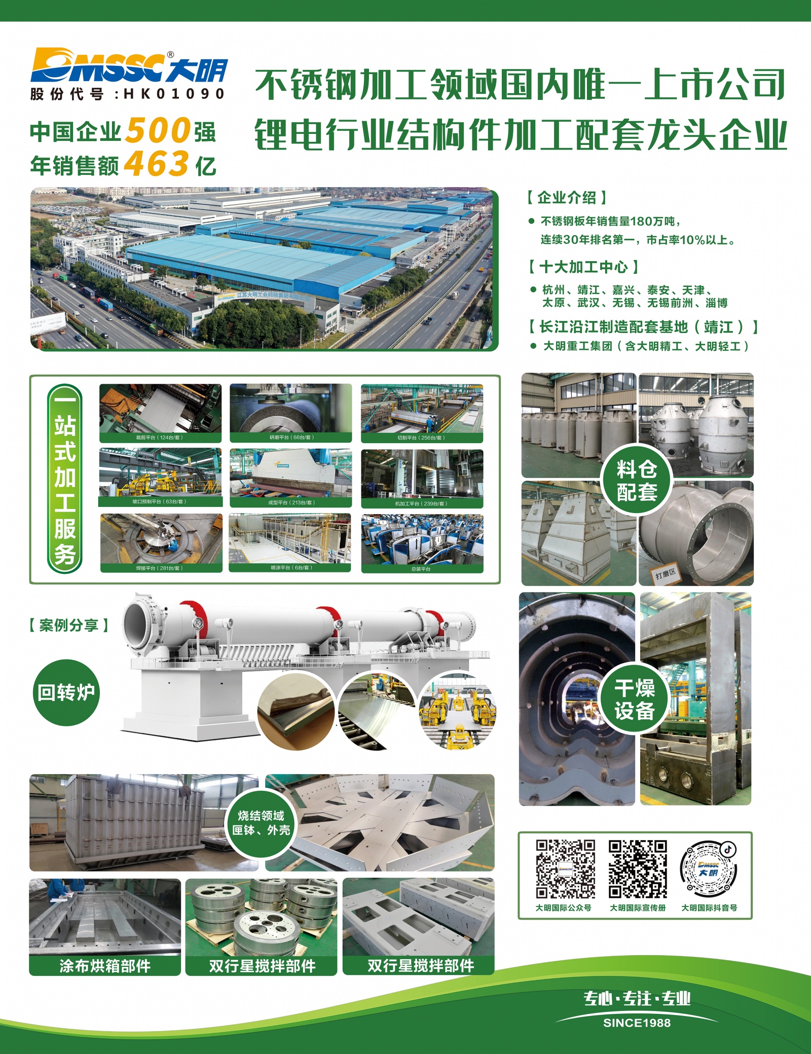大明成立于1988年,是國內金屬加工領域的龍頭和領先的高端制造配套服務企業,具備材料加工、零部件制作和成品制造、專業技術服務等全流程產業鏈。目前,大明已在全國建立10家加工服務中心和長江沿江制造服務基地(靖江),客戶覆蓋眾多行業的頭部企業。2010年,大明國際(01090.HK)在香港聯交所主板上市;2021年,大明實現不銹鋼產品銷量183萬噸,碳鋼產品銷量312萬噸,銷售收入463億元。