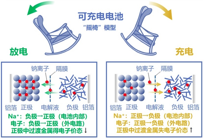 鈉離子電池的工作原理與鋰離子電池類似,屬于“搖椅”模型可充電電池。利用鈉離子在正負(fù)極之間嵌脫過程實現(xiàn)充放電。充電時,鈉離子從正極脫出經(jīng)過電解質(zhì)嵌入負(fù)極,同時電子的補償電荷經(jīng)外電路供給到負(fù)極,保證正負(fù)極電荷平衡;放電時則相反,鈉離子從負(fù)極脫嵌,經(jīng)過電解質(zhì)嵌入正極。在正常的充放電情況下,鈉離子在正負(fù)極間的嵌入脫出不破壞電極材料的基本化學(xué)結(jié)構(gòu)。