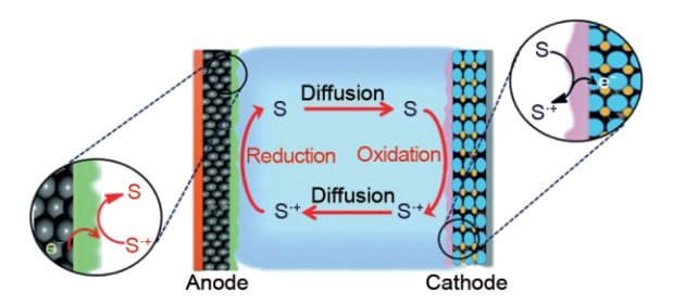 在過充過程中,氧化還原穿梭分子在正極側失去電子被氧化,形成的自由基陽離子將擴散回負極得到電子被還原。整個過程循環進行,直到電池內的過載電流被消耗殆盡。氧化還原穿梭添加劑通過在電極兩側的可逆反應將過充提供的多余電量轉化成熱,避免電極與電解液間的副反應,保護電池組件在高壓下免受損失。與其他安全保護添加劑(成膜劑、阻燃劑、鋁緩蝕劑、用于過充保護的電聚合劑等)不同,氧化還原穿梭劑由于其可逆反應機理,可以在不影響電池其他電化學性能的前提下提供連續可逆過充保護。