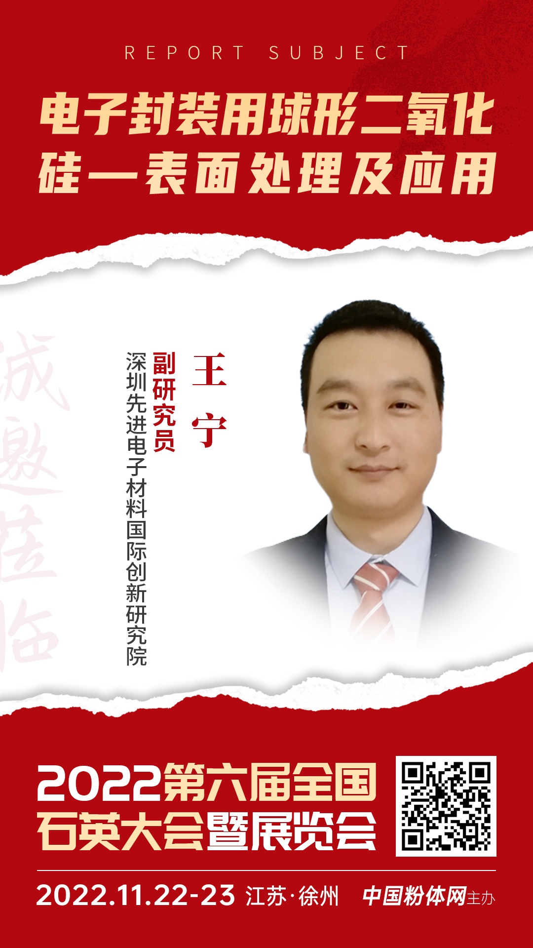 通過表面處理改性,可以減小球形二氧化硅之間的相互作用,有效防止團聚,降低整個體系的黏度,改善體系的流動性,還可以增強球形硅微粉與基體的相容性,使顆粒均勻分散。即將召開的“2022第六屆全國石英大會暨展覽會”,有幸邀請到來自深圳先進電子材料國際創新研究院的王寧副研究員,做《電子封裝用球形二氧化硅:表面處理及應用》的精彩報告。屆時,王研究員將為我們詳細介紹電子封裝用球形SiO2研究背景及意義,分析球形二氧化硅表面處理的關鍵問題、關鍵技術及發展趨勢。