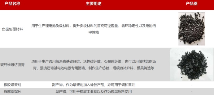 信德新材主要產品包括鋰電負極包覆材料、橡膠增塑劑、碳纖維可紡瀝青、裂解萘餾分等。