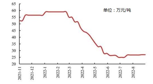 受上游原材料碳酸鋰及五氯化磷價格上漲等因素影響,8月份以來六氟磷酸鋰價格觸底反彈,市場均價達到28.8萬元/噸。