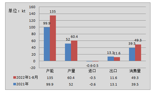 2021-2022年8月六氟磷酸鋰供需對比