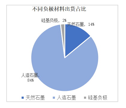 在鋰離子電池追求高能量密度、循環(huán)壽命、倍率性能以及安全性的情況下,電池廠對負(fù)極材料的選擇也提出了新的要求。當(dāng)前負(fù)極材料以石墨類負(fù)極為主。石墨類負(fù)極又分為天然石墨、人造石墨。相比天然石墨,人造石墨在首次效率、循環(huán)壽命等指標(biāo)上均優(yōu)于天然石墨,因此人造石墨負(fù)極材料在動力電池的運用上更為廣泛。據(jù)GGII數(shù)據(jù)顯示,2021年我國人造石墨出貨量為60.5萬噸,同比增長97%,占負(fù)極材料整體出貨量84%。