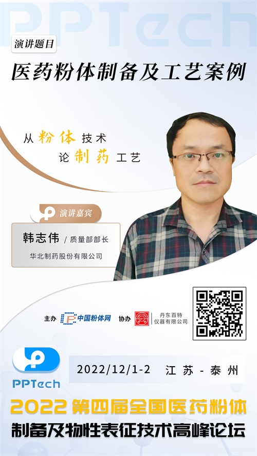 綜上所述,研究和掌握藥物粉體技術對制備出高性能的藥物具有十分重要的意義。以“從粉體技術、論制藥工藝”為主題,中國粉體網將于2022年12月1-2日在江蘇泰州碧桂園鳳凰酒店舉辦“第四屆全國醫藥粉體制備及物性表征技術高峰論壇”,屆時將邀請來自華北制藥股份有限公司的質量部部長韓志偉先生作《醫藥粉體制備工藝及案例》報告,報告主講人在固體制劑工藝方面有豐富的經驗,將為大家詳細介紹醫藥粉體的制備工藝,對不同粉碎程度藥物粉體的制備難點及相應解決辦法進行深度剖析。