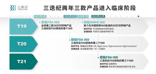 中國粉體網(wǎng)訊 11月18日,南京三迭紀醫(yī)藥科技有限公司(簡稱“三迭紀”,英文名Triastek)宣布,該公司自主研發(fā)的第三款3D打印藥物產(chǎn)品T21已獲得美國FDA的臨床試驗批準(IND),這是三迭紀兩年內(nèi)在FDA獲批的第三個IND。T21利用3D打印技術(shù)實現(xiàn)了精準的結(jié)腸靶向遞送,它體現(xiàn)了三迭紀在藥物遞送技術(shù)上的多樣性,驗證了新興技術(shù)在產(chǎn)品開發(fā)上豐富的應(yīng)用場景。