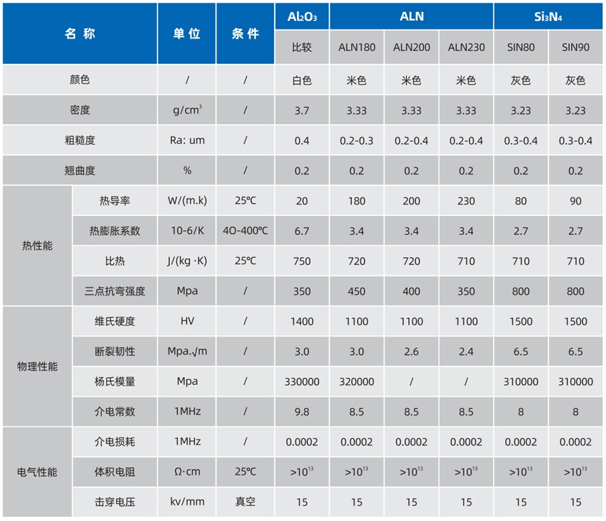 正天新材氮化鋁陶瓷基板產品性能