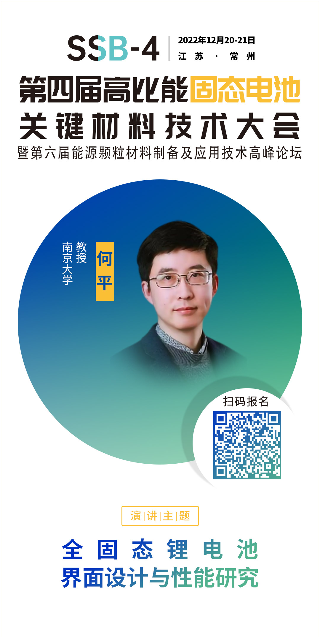 針對(duì)固態(tài)電池相關(guān)的技術(shù)、材料、市場(chǎng)及產(chǎn)業(yè)等方面的問題,中國(guó)粉體網(wǎng)將于12月20-21日在常州舉辦第四屆高比能固態(tài)電池關(guān)鍵材料技術(shù)大會(huì)。為致力于固態(tài)電池技術(shù)開發(fā)的企業(yè),科研院校,以及電動(dòng)車、儲(chǔ)能、特種應(yīng)用等終端企業(yè)提供信息交流的平臺(tái),開展產(chǎn)、學(xué)、研合作,共同推動(dòng)行業(yè)發(fā)展。屆時(shí),南京大學(xué)何平教授將作題為《全固態(tài)鋰電池界面設(shè)計(jì)與性能研究》的報(bào)告。報(bào)告將對(duì)近年來何平教授課題組針對(duì)固態(tài)電池普遍存在的科學(xué)問題所開展的固-固界面組成、結(jié)構(gòu)設(shè)計(jì)和輸運(yùn)機(jī)制的研究成果進(jìn)行介紹,包括無碳無粘結(jié)劑的鋰合金固態(tài)負(fù)極,金屬鋰表面SEI層原位構(gòu)筑,固-固界面的限域溶解化學(xué)機(jī)制,固-固界面空間電荷層對(duì)鋰離子輸運(yùn)特性影響的觀測(cè)以及固-固界面光熱增強(qiáng)效應(yīng)等。