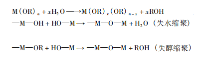 溶膠-凝膠法是金屬有機或無機化合物經過溶液、溶膠、凝膠而固化,再經熱處理而形成的氧化物或其他化合物固體的方法。此法的優點是化學均勻性好、顆粒細、純度高、設備簡單,粉體活性高,但原材料較貴,顆粒間燒結性差,干燥時收縮性大,易出現團聚問題。其反應機理如下: