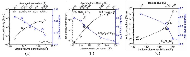 圖1固態電解質離子電導率與鋰離子所占據的晶格體積的關系