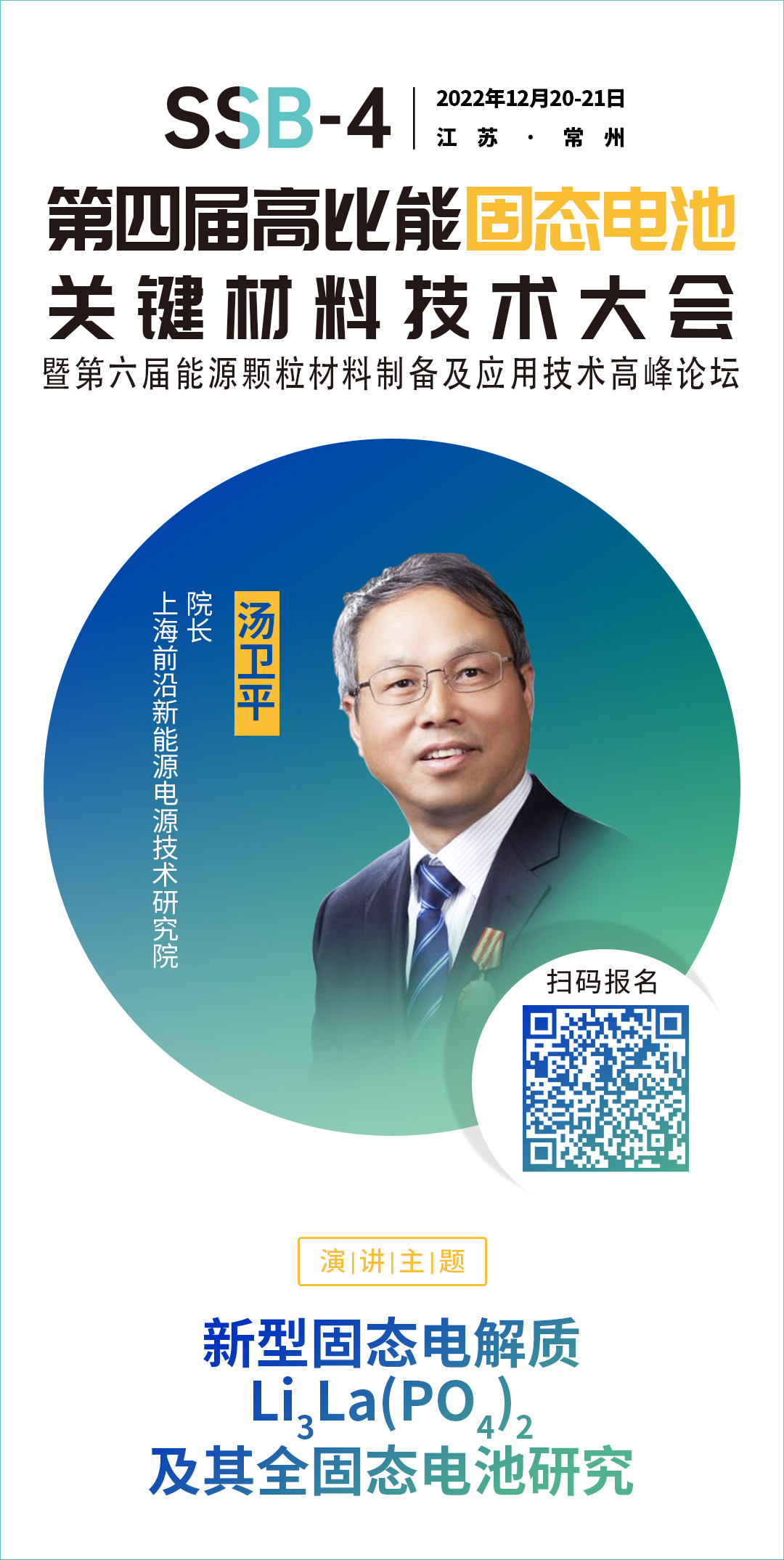 針對固態電池相關的技術、材料、市場及產業等方面的問題,中國粉體網將在常州舉辦第四屆高比能固態電池關鍵材料技術大會。為致力于固態電池技術開發的企業,科研院校,以及電動車、儲能、特種應用等終端企業提供信息交流的平臺,開展產、學、研合作,共同推動行業發展。屆時,上海前沿新能源電源技術研究院湯衛平院長將作題為《新型固態電解質Li3La(PO4)2及其全固態電池研究》的報告。