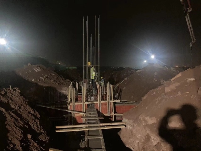 12月1日,項目部現場仍然燈火通明。(施工單位供圖)