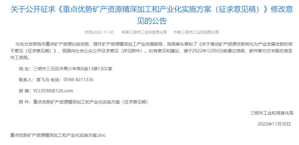 參考來源:三明市工業和信息化局、中國粉體網、三明日報等
