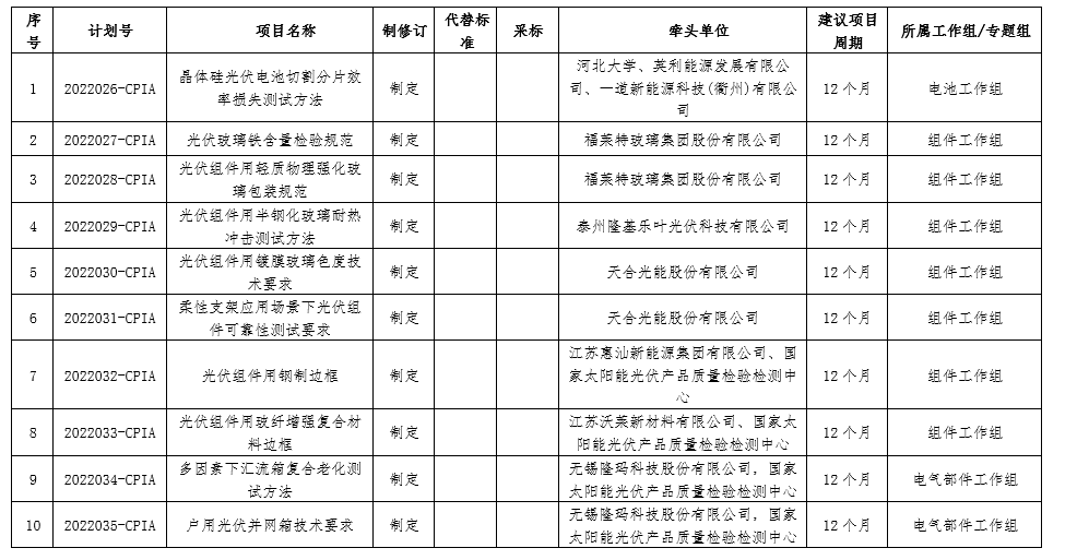 附件:2022年第三批光伏協(xié)會標(biāo)準(zhǔn)制修訂計劃項目匯總表