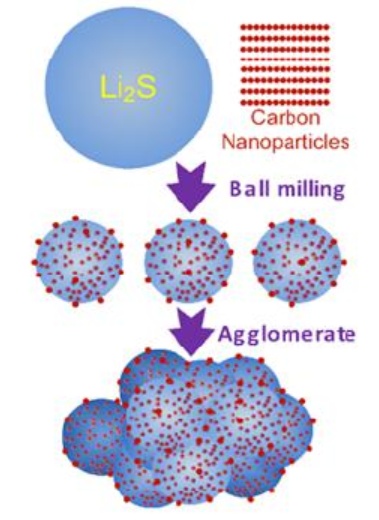 球磨法制備Li2S-C復合物工藝流程(圖源:Cai K,Song M-K,Cairns E J,et al.Nanostructured Li2S-C composites as cathodematerial for high-energy lithium/sulfur batteries)
