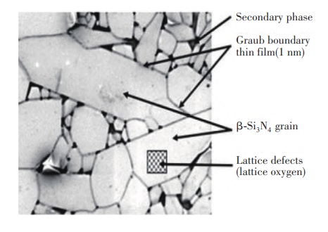 研究表明,在諸多晶格缺陷中,晶格氧是影響氮化硅陶瓷熱導率的主要缺陷之一。在燒結過程中,氮化硅粉中氧原子以二氧化硅的形式發生發生固溶反應: