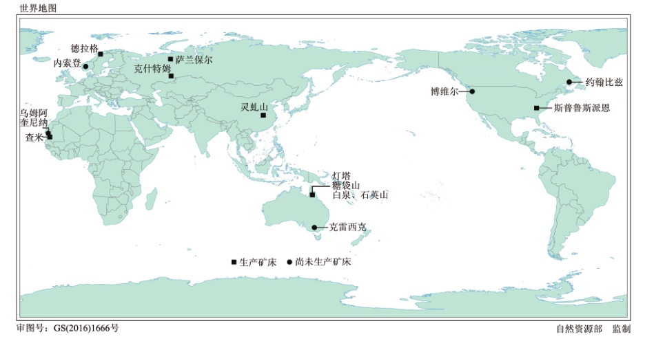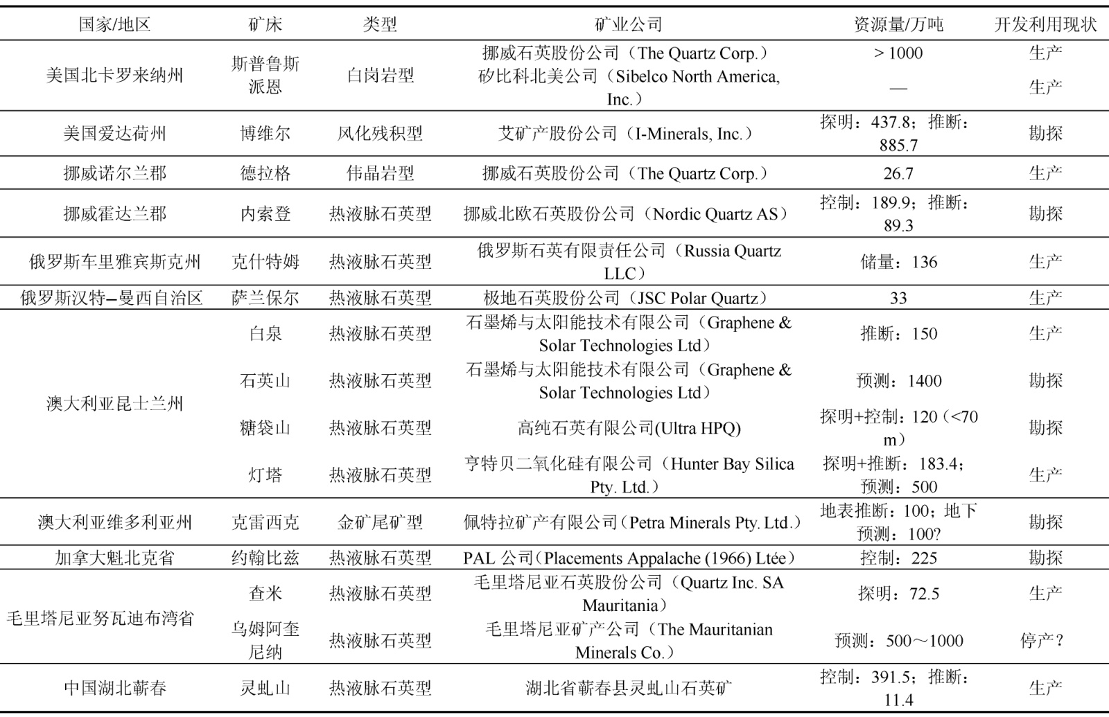 來源:王九一.全球高純石英原料礦的資源分布與開發現狀