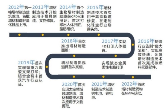中國粉體網(wǎng)訊 黨的二十大報告中明確指出,建設(shè)現(xiàn)代化產(chǎn)業(yè)體系,堅持把發(fā)展經(jīng)濟的著力點放在實體經(jīng)濟上,推進新型工業(yè)化,加快建設(shè)制造強國、質(zhì)量強國、航天強國、交通強國、網(wǎng)絡(luò)強國。增材制造作為深入實施“制造強國”戰(zhàn)略的主攻方向,加快建設(shè)“質(zhì)量強國”“航天強國”“數(shù)字中國”的重要手段,已經(jīng)成為我國制造業(yè)領(lǐng)域的亮眼“名片”,對推動我國制造業(yè)高端化智能化綠色化發(fā)展、促進實體經(jīng)濟和數(shù)字經(jīng)濟高質(zhì)量融合、著力提升產(chǎn)業(yè)鏈供應鏈韌性和安全水平起到了巨大作用。我國增材制造產(chǎn)業(yè)蓬勃興起于2012年,經(jīng)過十年的快速發(fā)展,取得了令人矚目的成就。