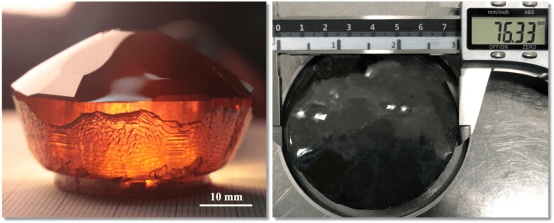 圖一 奧趨光電制備的2英寸AlN單晶錠(左)和3英寸AlN單晶錠(右)