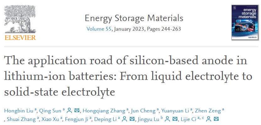 哈爾濱工業大學(深圳)慈立杰教授、李德平(助理)教授、陸敬予(助理)教授以及QingSun等人系統地綜述了鋰離子電池的硅基負極的挑戰及其解決方案,并將其分為液態電池部分、準固態電池部分和全固態電池部分。該研究以題目為“The application road of silicon-based anode in lithium-ion batteries:From liquid electrolyte to solid-state electrolyte”的論文發表在能源材料領域國際頂級期刊《Energy Storage Materials》。