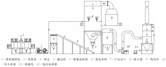 降低漿料的含水率,造粒所需熱量就少,但是含水率低的泥漿流動性又不好,流動性差,霧化效果就差。為了解決這一矛盾,可加入合適的粘結劑或電解質來調節漿料的流動性,同時降低漿料的含水率。另外,提高漿料溫度可有效降低漿料粘度,改善漿料霧化性能,防止漿中的大顆粒堵塞霧化噴嘴。