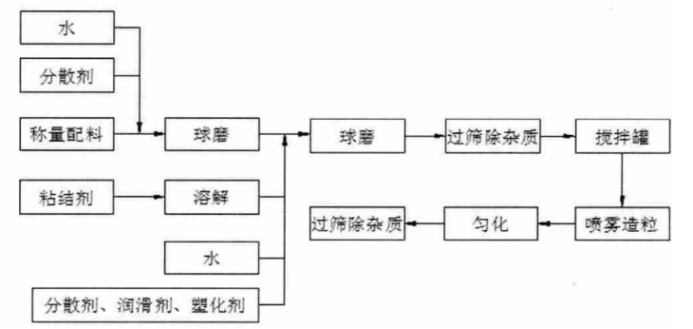 噴霧造粒法是把坯料和塑化劑混合后配置成固相含量一定的漿料,然后用噴霧器將漿料噴入造粒塔進行霧化,就能夠得到流動性較好的球狀顆粒。