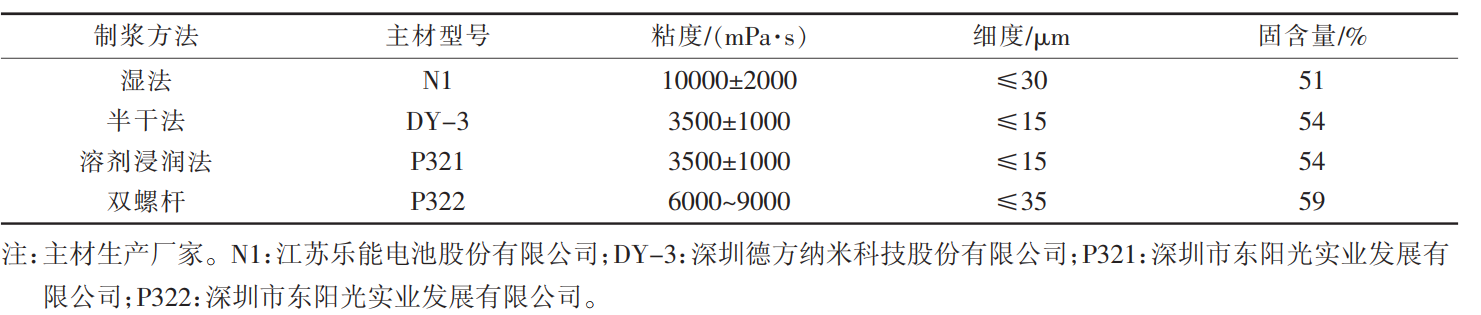 不同制漿方法所得磷酸鐵鋰正極漿料的特性