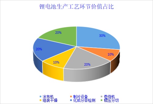 從價(jià)值量上看,整線中涂布機(jī)和卷繞機(jī)價(jià)值量較高。前段設(shè)備中涂布機(jī)價(jià)值量約占其80%以上;中段設(shè)備中卷繞機(jī)價(jià)值約占其成本的70%左右;后段設(shè)備中化成分容檢測(cè)占70%,組裝占30%,檢測(cè)設(shè)備屬于行業(yè)發(fā)展到成熟階段的產(chǎn)物,國(guó)內(nèi)外差距較小,國(guó)產(chǎn)化程度極高。