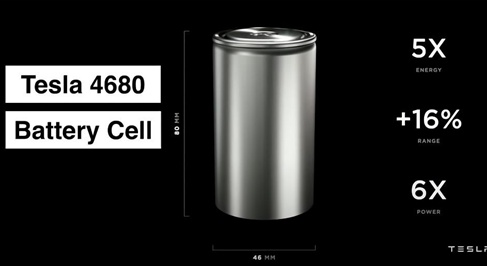 2020年9月23日,特斯拉在股東大會暨“電池日”活動上,發布了全新的無極耳4680電池。據悉這款新型電池可提升5倍的能量、6倍的功率,并增加16%的續航里程,更關鍵的是,還能顯著降低生產成本。