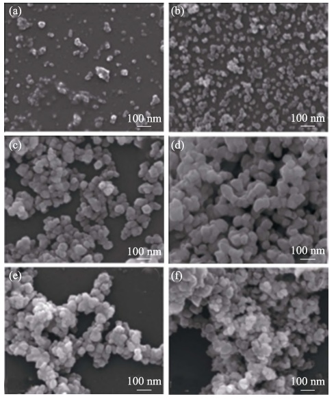 圖1 不同微波熱解溫度和750℃常規(guī)熱解獲得氧化鋯粉體的SEM照片