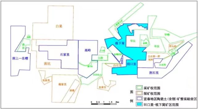 宜春鋰云母礦資源分布主要集中于兩個區域:宜豐-奉新礦區,包括宜豐縣花橋鄉、同安鄉及奉新縣上富鎮等;新坊礦區,即江西鎢業旗下的宜春鉭鈮礦所在地。