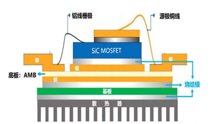 SiC MOSFET封裝模塊剖面圖(來源:低溫燒結銀、中信建投)