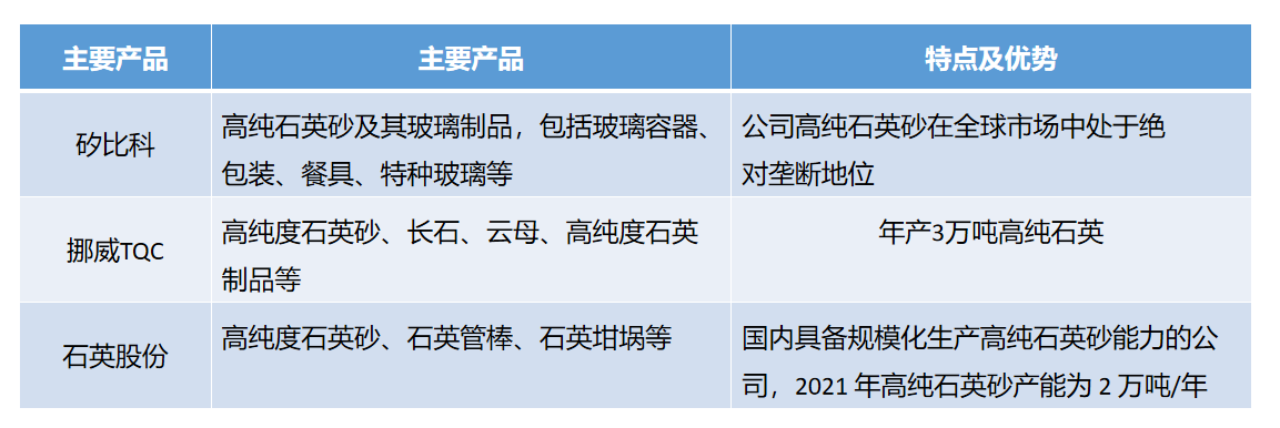 高純石英砂主要生產廠商對比